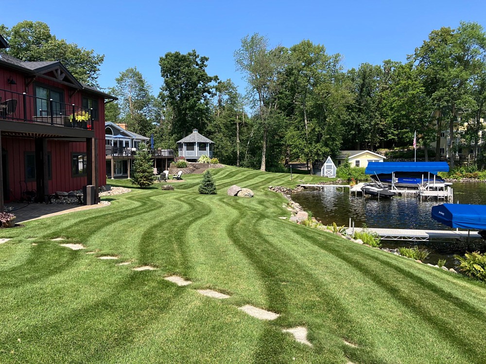 Mowing is a very important factor in maintaining a healthy lawn. A professional mower using proper mowing techniques will ensure a smooth, well groomed appearance for your lawn. Mowing at the proper height and on the proper schedule helps maintain a dense, uniform look and reduces the competiveness of weeds. Service includes mowing at all turf areas, trimming of all edges, trees, and landscape. All landscape, sidewalks, and driveway surfaces are blown free of grass clippings and debris. (Service performed May thru October.)